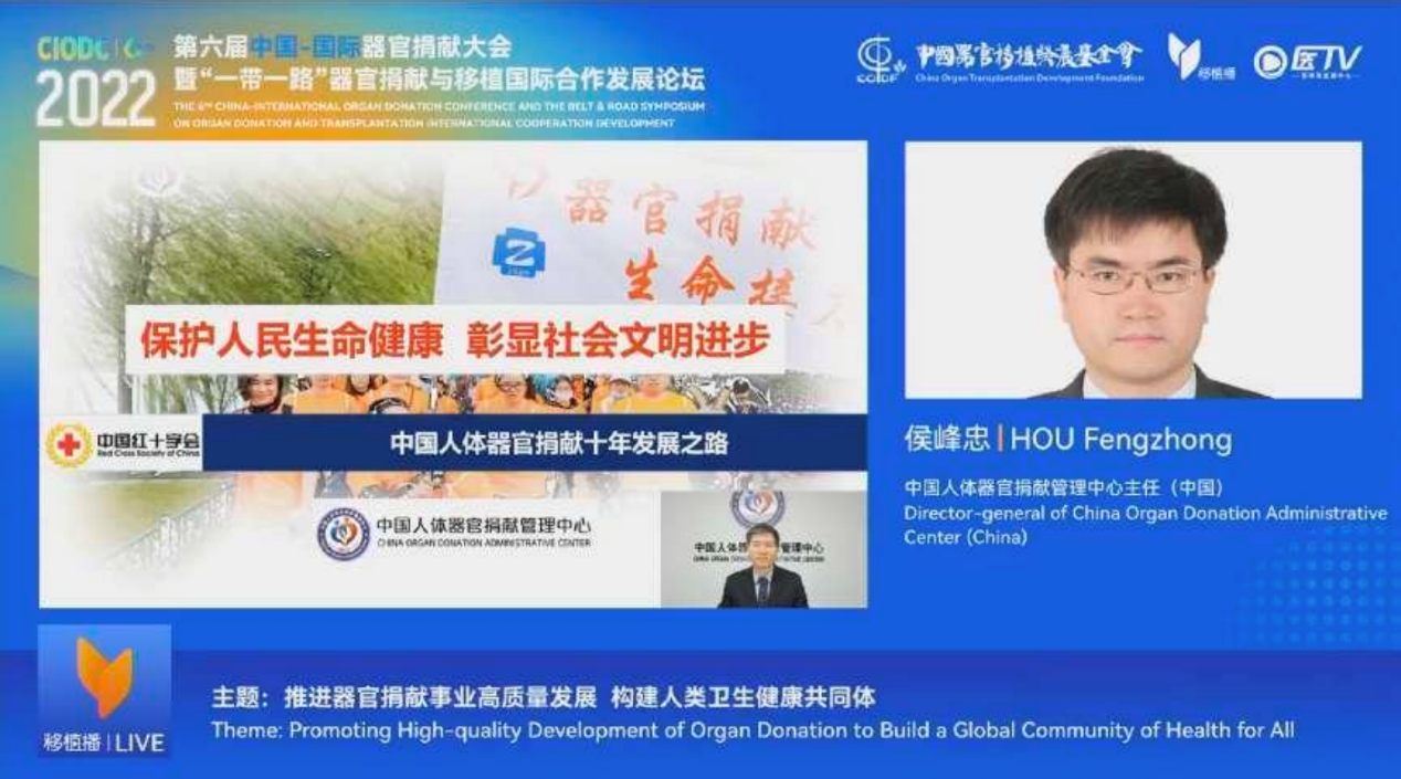 2022年12月9日,第六届中国-国际器官捐献大会(CIODC)暨“一带一路”器官捐献与移植国际合作发展论坛以线上会议的形式顺利召开。大会由国家卫生健康委员会、中国红十字会总会指导,中国器官移植发展基金会、中国人体器官捐献管理中心主办,西班牙DTI基金会、中东器官移植协会(MESOT)联合主办,国际器官移植协会(TTS)、中国人体器官捐献与移植委员会、国际器官捐献与获取协会(ISODP)、亚洲器官移植协会(AST)、欧洲器官移植协会(ESOT)、非洲器官移植协会(ASOT)、拉丁美洲器官移植协会(STALYC)、欧洲器官捐献与移植协调组织(EDTCO)等支持。