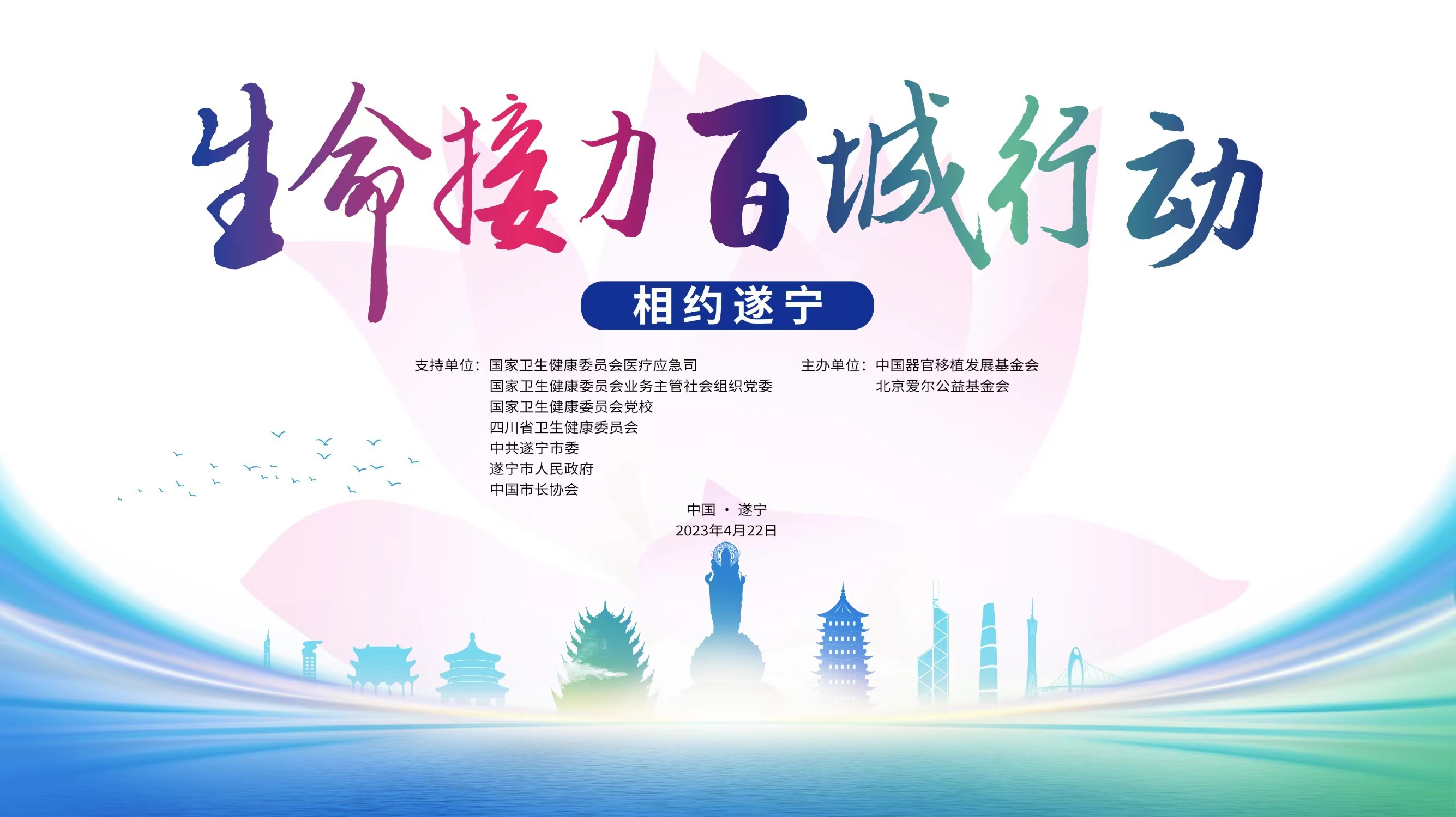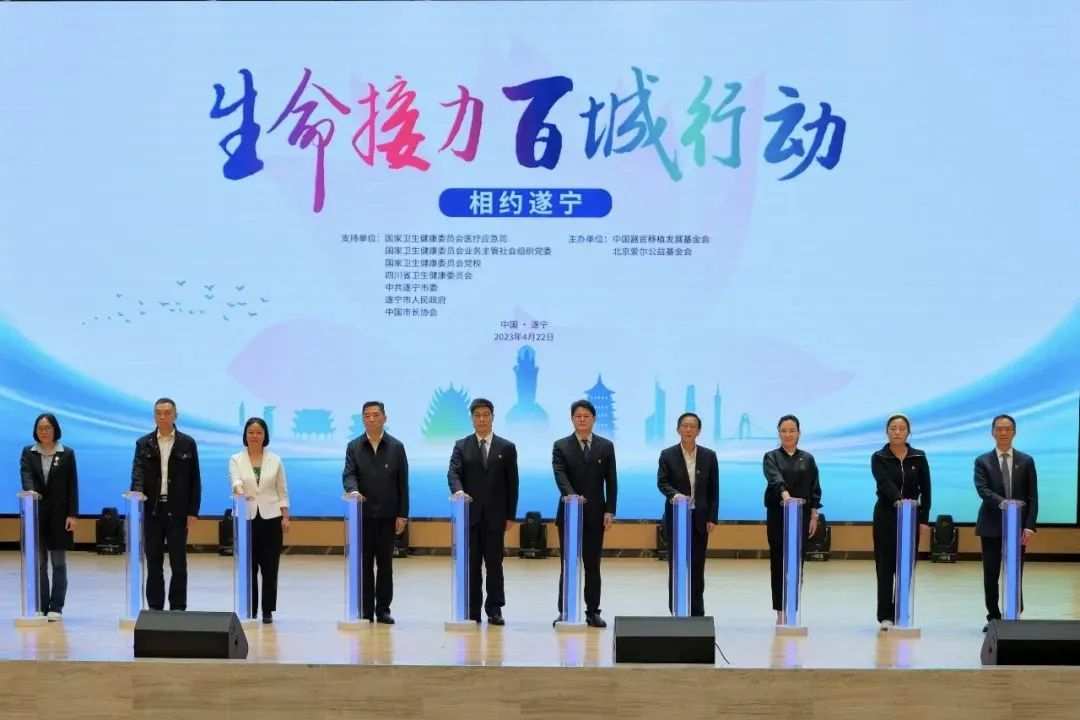 “生命接力 百城行动”以城市整体为单元,推动城市精神文明建设工作,以“生命接力先锋队”党建引领,广泛、多形式宣传器官捐献理念,营造器官捐献文化氛围,同时推广器官捐献志愿服务,引导器官捐献志愿登记,提高城市公益慈善指数,促进城市公益慈善事业发展。作为全国文明城市、观音故里、慈善之都,遂宁具有浓厚的慈善文化氛围,拥有促进器官捐献及移植工作稳步向前的各类资源条件。中国器官移植发展基金会将“生命接力 百城行动”首站定于遂宁,拉开大爱传递的帷幕。