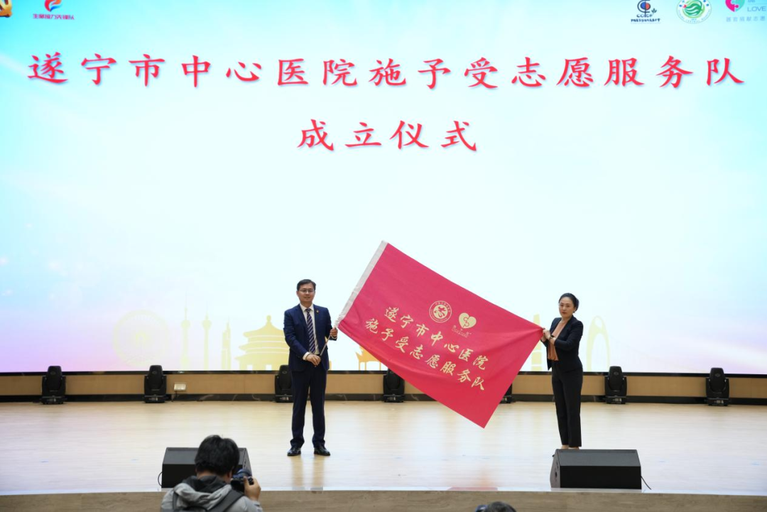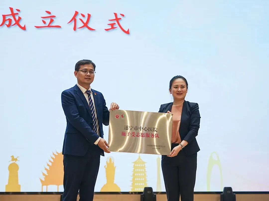 作为“生命接力 百城行动”相约遂宁系列活动,中国器官移植发展基金会和中国医学影像技术研究会联合党支部、中国器官移植发展基金会联合遂宁市中心医院共同举行“生命接力先锋队”走进遂宁市中心医院联学联建主题党日暨施予受器官捐献志愿服务主题日活动”在遂宁市中心医院举行。遂宁市中心医院成为“生命接力先锋队”党建联盟大家庭中的一员,医院党委书记陈亮接过“生命接力先锋队”党建联盟杯、队旗。现场还举行了“施予受器官捐献志愿服务合作”启动仪式,并进行“施予受器官捐献志愿者服务平台”授牌、“施予受志愿服务队”队旗授旗仪式,医院“施予受器官捐献志愿服务平台”正式上线、“遂宁市中心医院-施予受志愿服务队”成立。据悉,四川省卫生健康委宋世贵副主任、遂宁市吴新春副市长等党员干部现场登记成为器官捐献志愿者。截止当天,在医院党委和院领导班子领导部署下,通过遂宁中心医院施予受平台登记志愿者人数已超过千人。