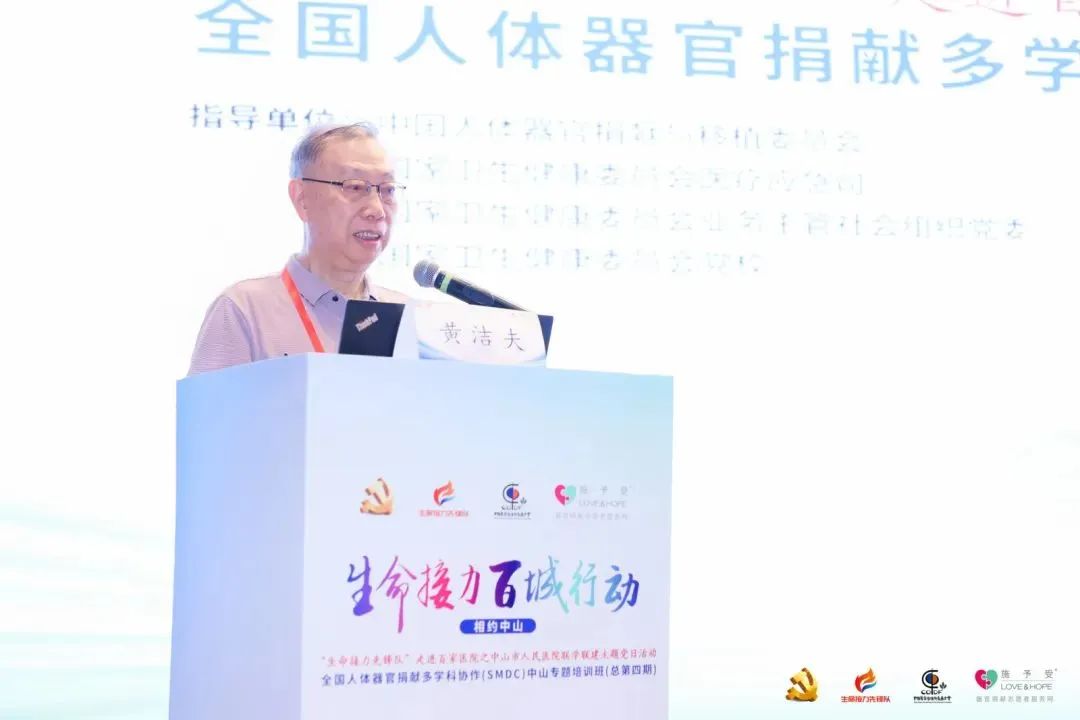中国人体器官捐献与移植委员会主任委员,国家COTRS科学委员会主席、中央保健委员会原副主任(正部长级)、原卫生部副部长黄洁夫在致辞中表示,器官移植不仅是一项挽救人民群众生命的医疗技术,更涉及医学、法律、伦理、社会、文化等各领域的深层次问题,关乎我国在全世界的政治形象和大国地位。在党中央国务院的领导下,在全行业的共同努力下,我国器官捐献和移植事业历经壮士断腕的改革,取得的成绩获得了全球同道的肯定。但另一方面应当看到,我国器官捐献水平尚较低,全社会对器官捐献工作的认识水平尚有很大的提升空间,距离建设器官捐献和移植大国、强国还有很大的差距。他以孙中山的话来勉励大家:革命尚未成功、同志仍需努力,希望中山市政府和各级各类医疗机构能够以活动为契机,持续加强相关工作、加强自身建设,造福人民健康福祉。